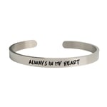 Hold love close wherever you go with the "Always in My Heart" engraved bracelet. This touching phrase is a reminder of the unbreakable bond we share with those we love—whether near or far, they remain forever in our hearts.